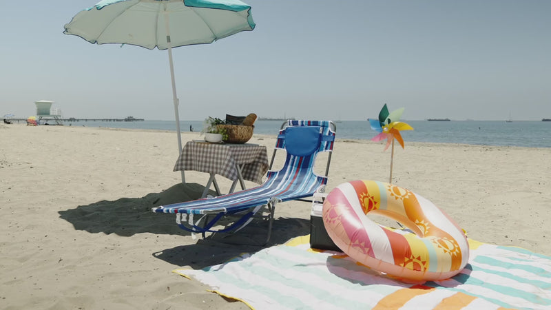This portable beach tanning chair folds down to 55×11×73 cm and comes with built-in shoulder straps for hands-free carrying. At 11.45 lbs, it's lightweight enough to take from car to beach in one trip — no cart, no hassle.